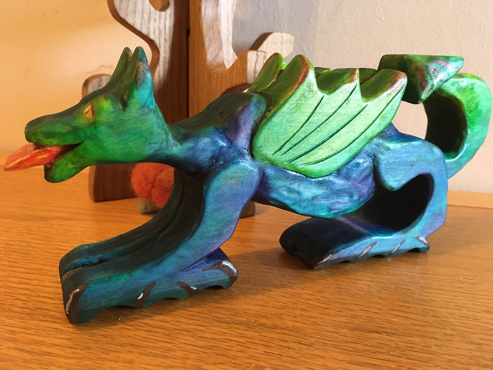 The next make, tortoiseshell cat, I bought my first scroll saw to shape it a little before I then started carving it. Loved making this one. This piece is finished with the Tiny Land sealer which I was using right up to finding I couldn't get my Storm Kelpies prototype pieces to pass the UKCA conformity soak tests and switched to something else.